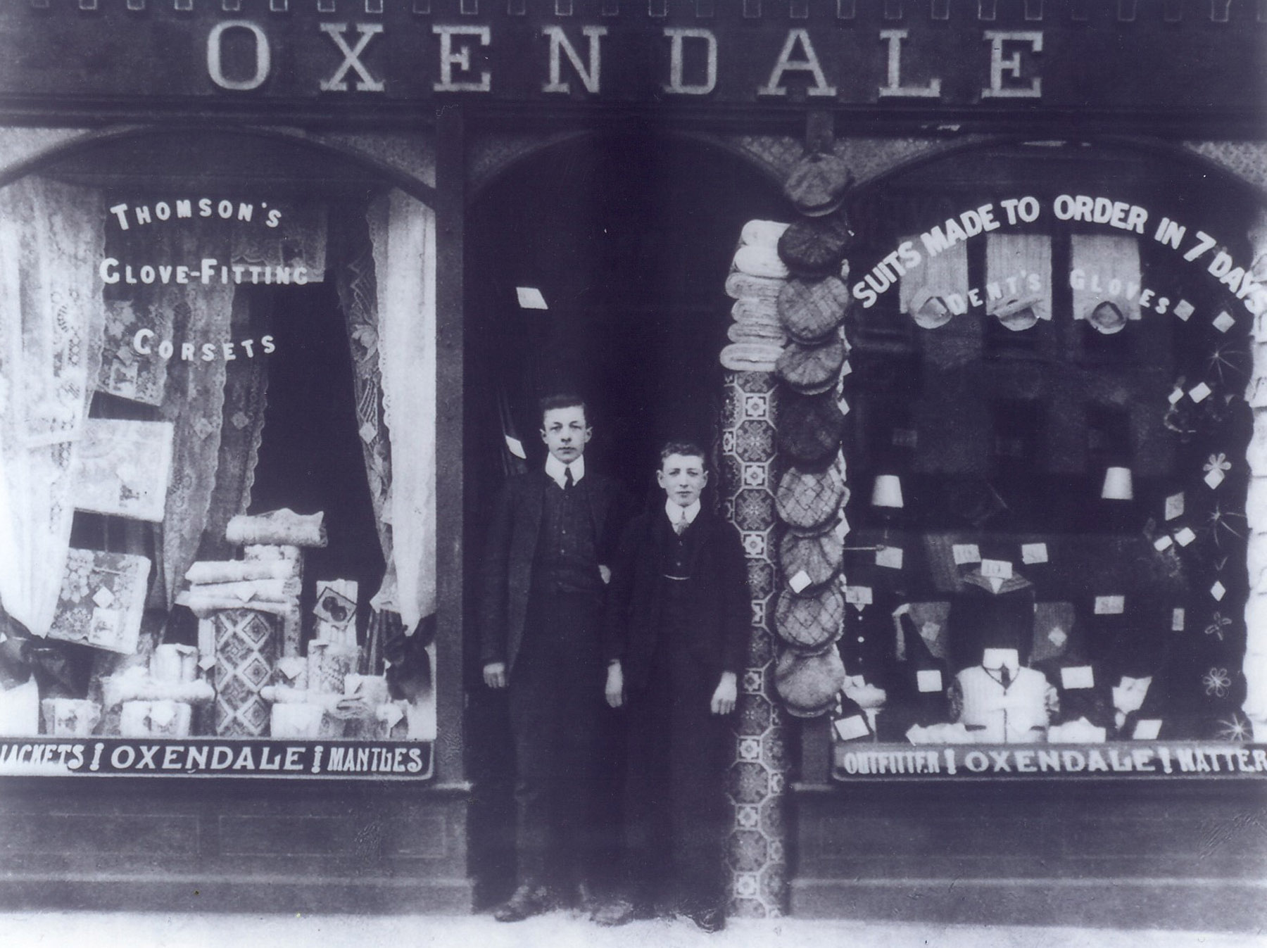 One of the store’s specialities was fabrics- dress fabrics, hessians, shirtings, tweeds, cottons, linens, sheeting, blanket wools and brush braids, which protected the hem of ladies’ long skirts as they walked around town. The store expanded by doubling its High Street frontage, acquiring the former Boston’s grocery store next door around 1937. William’s son Leslie was now heavily involved in the store, taking a particular interest in men’s outfitting. The shop no longer employed its own tailors, so after a customer’s measurements were taken and a cloth was chosen, a length was cut on site and taken by rail from Northallerton to Leeds to be made into a suit and returned the following week.