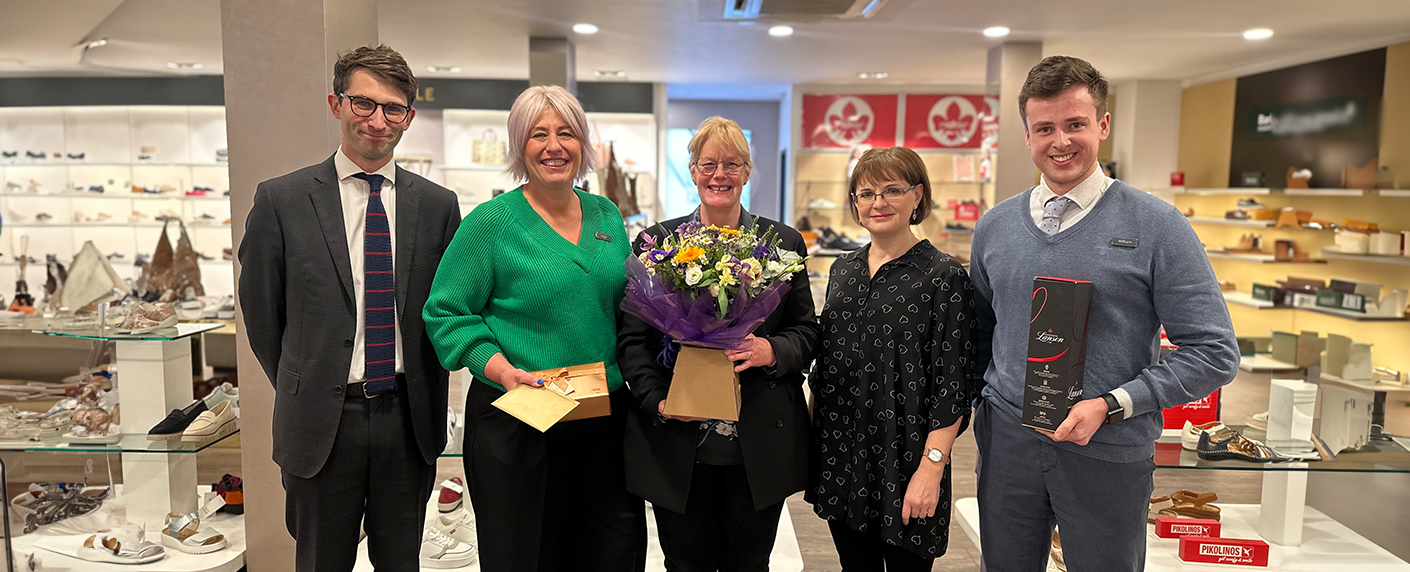 This week we surprised Jo with some special treats to show our appreciation for her service - Guy Barker who presented the gifts said, “since Jo started at Barkers, the Shoe Department has sold over 320,000 shoes!